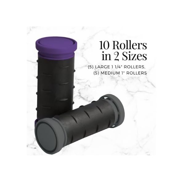 10 Rollers in 2 Sizes: This set includes (5) large 1¼" rollers and (5) medium 1" rollers to create a variety of looks from natural volume to gorgeous curls.